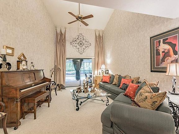 Beautifully appointed home nestled in the exclusive community of Valley Ranch. This residence is situated on a oversized prime conservation lot while featuring 3,308 square feet w/ 4 bedrooms, 3 bathrooms, 2 car garage, pool/hot tub, and a multi level deck. Be greeted by majestic shady oak trees while pulling up to your circular brick paved drive. This home is loaded w/ custom features and storage while offering a highly desirable split floor plan. Dark wood laminate floors sprawl throughout w/ the interior covered in neutral paint colors. The breath taking kitchen boasts elegant cabinetry, high end stainless steel appliances, granite countertops, island w/ cooktop, and breakfast bar. Family room is extra spacious w/ vaulted ceilings and focuses on amazing views of the tranquil backyard. Bedrooms 2 and 3 are well sized w/ ample closet space, and are connected to a Jack and Jill bathroom. Bedroom 4 is located in the front of the home, and offers tons of natural light. The master suite is a true escape w/ large ceilings and expansive closets w/ built ins. Master bath offers double sinks, soaking tub, and stand up shower. Enjoy Florida living at its best w/ your sparkling pool that is enclosed w/ a screen enclosure, custom wet bar w/ fridge, and tons of covered patio space. A privacy wall encloses your fully decked backyard that is perfect for entertaining. Truly a RARE find with LOW energy bills, a premier school district, easy highway access, and a park right across the street. Make your appointment today!
