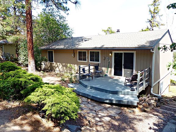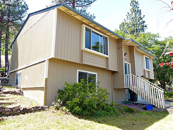Just relax and enjoy the view of the Chenowith Rim/ Eagle Caves from the very private back deck of your home. The forested back drop with hiking trails out your back door is a rare find. This 4 bedroom 2 bathroom home has an open floor plan with 2 bedrooms upstairs and 2 bedrooms downstairs. Home has a 500 sq ft double car garage with a lot of storage space. Fully fenced back yard is great for pets. Quiet neighborhood. 3D virtual tour available. Seller is allowing showings.