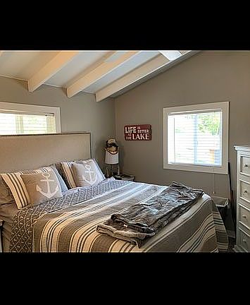 Fantastic lake cabin in a great neighborhood. Pride of ownership shines at this home as you will notice the improvements the owners have made since purchasing. Enjoy the expansive view and cove location with deep water at this nicely remodeled home with vaulted ceilings, open living space, covered decks and a nice concrete dock with swim platform and storage shed. Dock also has new 7000# boat hoist and pwc lift. No worries about big ticket items such as roof,ac, furnace,windows, floors or appliances as they have all been recently updated. The owners have 2 bedrooms, 1 bath, kitchen and family room on the main level and a finished basement currently used as a 3rd bedroom but can be used as a family room or man cave. No gravel roads as this one is paved to the door. Boat and furniture can also be purchased for extra $.
