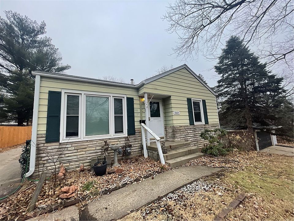 Good one story home that features: two bedrooms, hardwood floors, lower level, two car garage, and back covered deck.