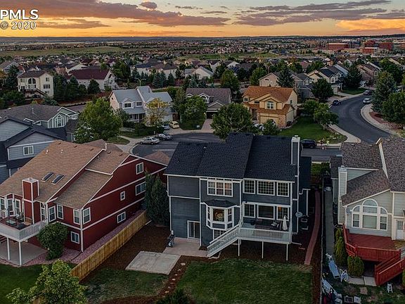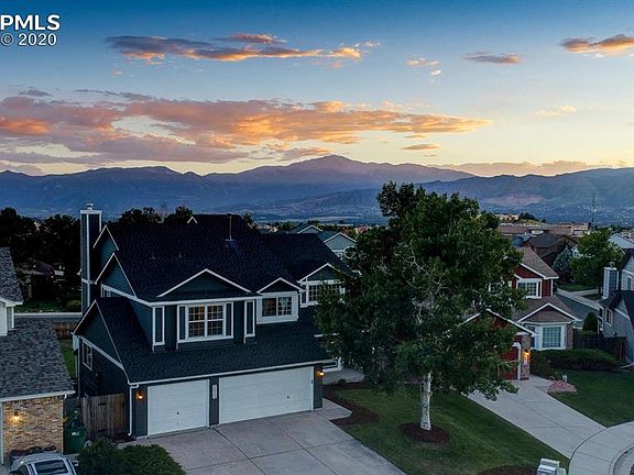 Restoration Hardware type Briargate 2-story w/ unobstructed Pikes Peak views. Large culdesac lot just shy of a 1/4 acre. Open floor plan w/ hardwood flooring throughout main, vaulted ceilings, updated light fixtures, crown moulding, newer carpet, white brick fireplace, & floor to ceiling windows. Remodeled kitchen featuring Calcutta Quartz counter tops, new cabinets w/ hardware, white subway tile backsplash, SS appliances, butcher block island, & updated faucet. Main level half bath features shiplap walls, quartz counters, & modern fixtures. Master suite features attached 5 piece bath w/ gray tile & large soaking tub. Huge walk-out basement features natural light and two additional bedrooms. Backyard deck & patio great for entertaining or enjoying the views. New Furnace & Central A/C in 2019. New water heater in 2016. Pride of ownership.