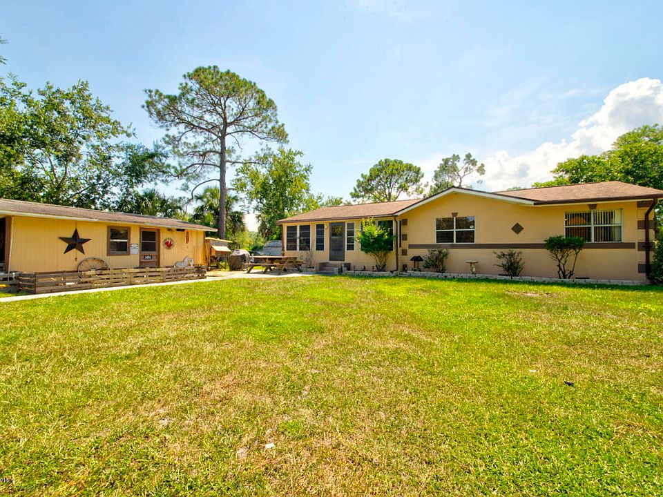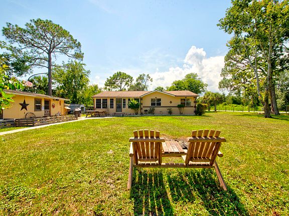 Gorgeous home conveniently located in Canaveral Groves sitting on an acre of property! Updated kitchen, new water heater and 2 car carport. This 3 bedroom 2 bath home also has a bonus room that can function as an office or 4th bedroom. Horses welcome!!! The yard is fenced for animals and has a tack house with water. Plenty of room for a pool and RV/Boat parking. Schedule your showing today!