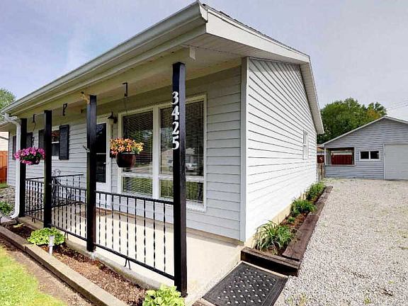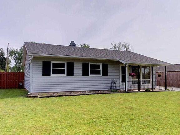 Charming 3 bedroom ranch style home boasts curb appeal with grey vinyl exterior, black shutters & covered front porch with black wrought iron railings. The welcoming living room has floor to ceiling windows for plenty of natural lighting plus a ceiling fan. The floorplan has a wonderful open flow with kitchen access from both the dining and living rooms. The cheerful kitchen was designed for easy meal prep and is furnished with oak cabinetry, a tiled backsplash, plus nook for washer & dryer. All appliances remain including washer & dryer. All 3 bedrooms are nicely sized, and bedroom #3 is currently used as a home office/craft room. Multiple closets throughout add storage. The detached 1 car garage is oversized for additional storage options. Spacious backyard is ideal for relaxing or family gatherings with both a patio area and expansive covered porch. Fully fenced convenient for small children and family pets. Additional details include new roof in 2014, newer Bee windows & insulated steel exterior doors. This beautifully maintained home is set in a quiet neighborhood with nearby schools, shopping, dining, the Waynedale Branch library, Hillâs Market & Orchard Ridge Country Club.