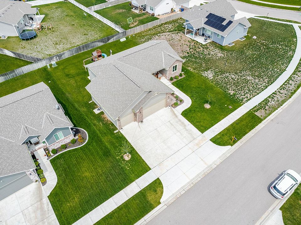 Introducing a beautiful 2020 Northbrook ranch home that boasts 5 spacious bedrooms, 3 contemporary bathrooms, & desirable 3 car garage. Conveniently located within sought-after Stone Creek Elementary attendance area & providing easy access to both Wichita & McConnell AFB. Featuring durable quartz kitchen counters & easy care luxury vinyl plank floors, the interior of this home showcases a tasteful blend of elegance & practicality. The open concept living area allows for seamless transitions between the kitchen, dining, & living areas, making it perfect for comfortable family living & entertaining. Prepare to be thrilled with the show-stopper tile shower in the primary ensuite bathroom! Additionally, this charming property includes a finished view-out basement which provides an abundance of additional living space for families or guests. All the storage & shelving components in the 3 car garage remain for the benefit of the buyers. The deck was recently refinished. The well-designed layout ensures privacy and separation between the sleeping areas with the split bedroom layout. Designed with high-quality and sustainable materials, this home is both energy-efficient and environmentally friendly, assuring you of safe and healthy living space.