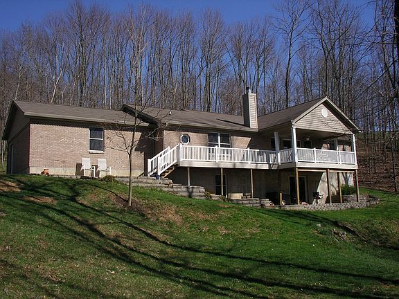 Seclusion in nature with no view of anyone around. Open light filled floorplan, added solar tubes thru-out. Great room w/brick FP. Split bedroom plan w/Master including laundry. Walkout basement onto 2 level paver patios. All brick no maintenance exterior. 2 roofed porches w/aluminum no weather deck & vinyl railings. Stunning sunsets off back deck.