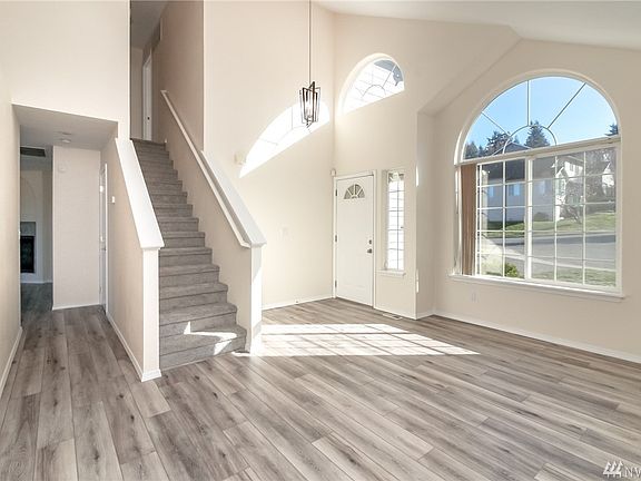 Gorgeous Benson Hills home features spacious floor plan, Vaulted Ceilings, kitchen w/ quartz counter tops & SS/appliances. Open living room w/ gas fireplace & glass slider to backyard deck for views of Olympics, valley & colorful sunsets. Large amount of windows provide the home with an abundance of natural lighting. 2 car garage w/lots of storage. Located in a charming Winsper neighborhood. Quick and easy access to I405, Hwy 167, Valley Med Hospital, IKEA, Shopping & Restaurants.