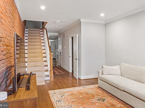 This stunning three-story home, a masterful renovation by Chesapeake Custom Properties LLC, offers the perfect blend of historic charm and modern luxury. With CHAP tax credit with 6 years left, this 15-foot-wide home boasts over 2,000 square feet of meticulously finished space, including three bedrooms, three-and-a-half bathrooms, and two-car lighted parking. Every detail has been carefully considered to deliver a home that is both elegant and functional. The home greets you with gorgeous real hardwood floors, soaring 9-foot-plus ceilings, recessed lighting, exposed brick, and intricate custom trim work. The chef#x2019;s kitchen is a showstopper, featuring 42-inch custom-made soft-close cabinetry, a hand-milled range hood, gleaming quartz countertops, upgraded stainless steel appliances, a built-in wine fridge, a breakfast bar, and a pot filler. The light-filled living room with exposed brick and the dining room, enhanced by a coffered ceiling and shaker-style wainscoting, provide stylish spaces for relaxation and entertainment. On the upper level, the thoughtful design continues with 10-foot tray ceilings in the front bedroom, a hallway linen closet, and a dedicated laundry center with a front-loading washer and dryer. The second-story bathroom features a custom tile design with a frameless glass tub-shower combo, making it ideal for families with young children. The owner#x2019;s suite is a luxurious retreat with a spacious walk-in closet and an exquisite primary bathroom. The oversized frameless glass shower with dual shower heads, a dual vanity, Bluetooth-enabled audio, and mood lighting creates a spa-like experience right at home. The fully finished lower level offers additional living space, including a club room, a bedroom, and a beautifully tiled full bathroom. Throughout the home, ample storage solutions, including a crawl space and linen closets, ensure practicality meets sophistication. This smart home is outfitted with state-of-the-art technology, including smart light switches, door locks, and Nest thermostats for two heating and cooling zones, allowing you to control the entire home conveniently from your mobile device. The rooftop deck is a true gem, offering breathtaking panoramic views of the water and the city skyline, making it the perfect spot to relax or entertain. Combining luxury, technology, and timeless design, this home provides everything you could want for modern living in the heart of the city.