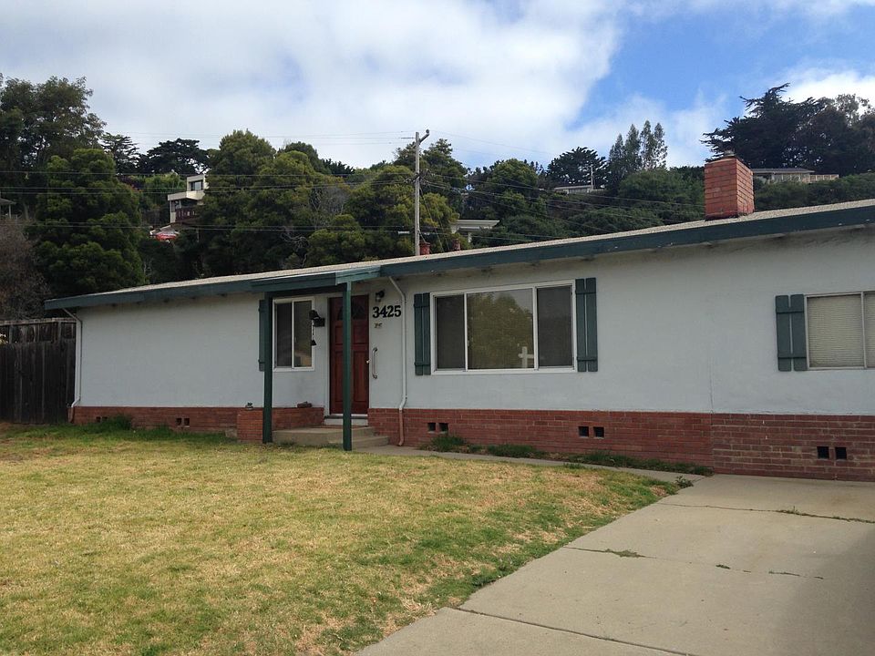 Coveted Mission Fields single level 4 bedroom 2 bath home. Light and bright with high beam ceilings, an open kitchen and hardwood floors throughout. This home sits on a large spacious corner lot with room for additional parking. Located in the Highly rated Carmel School district. Only a short distance to the beach, Carmel Mission, restaurants and shopping. Bring your imagination and a little TLC to this well loved family home.