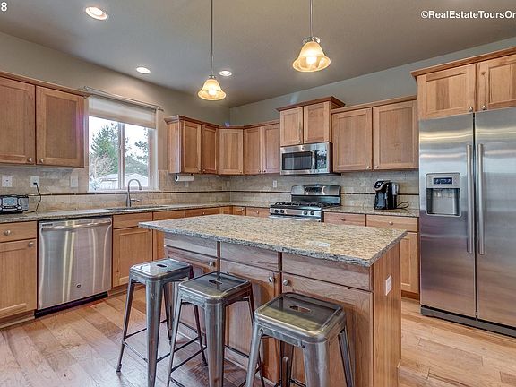 Enjoy easy living in this bright, spacious home! Open floor plan w/large island, hickory floors/cabinets, granite counters & ample storage. Sizeable master suite boasts soaking tub, dual vanities & walk-in closet. Sellers have added AC, a 16x12 heated workshop in back, a decorative bridge, raised beds & separate tool shed, plus fully insulated the garage. Large, covered back patio & directly across from Oak Hills Park!