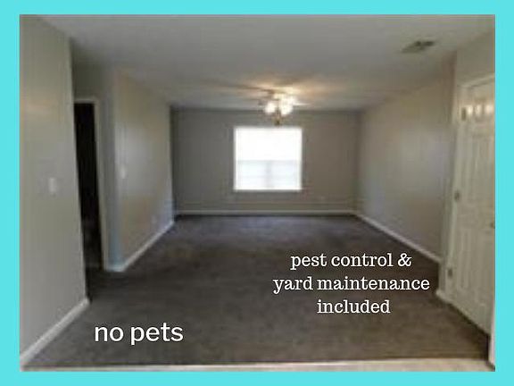 Large living room completely open to the kitchen. Large laundry room (not closet) with shelves. Down the hall you'll find the hall bathroom, spare bedroom and master suite. Don't miss the back yard that's privacy fenced almost all the way! You don't want to miss this wonderful place! Yard maintenance and pest control included in rent. Yard maintenance & pest control paid by owner
