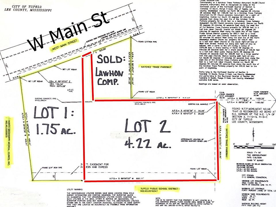 This property in West Tupelo is mostly cleared & ready for development! Close to Tupelo Regional Airport, Tupelo Furniture Market, the Natchez Trace Parkway & Ballard Park. This beautiful property is a perfect spot for a new restaurant, hotel or office building.*** Property can also be purchased with total of 5.97 acres for $1,599,000. See MLS# 20-1913. *** All info subject to verification.