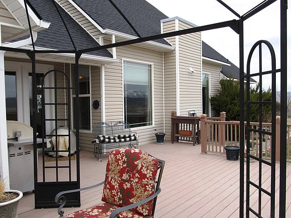 Absolutely gorgeous custom home. Two master suites, gourmet kitchen, formal dining, Xtra Lg rear trex deck, huge covered front porch, hickory wood flooring, carpet only in bedrooms, oversized master bath w/corner jetted tub, separate tiled shower, 9' raised ceilings throughout, the oversized garage has built in cabinetry & there's a 2nd detached 2-car garage with metal roof. Views of the Rubies and the city & valley... see directions below. Call L/O for a list of all amenities & appointment to show. TAKE: Mtn City Hwy about 1 mile past Walmart to Cattle Dr., Turn Right. At the top of the hill turn left on Western Way, follow it around to the 2nd house on the left.