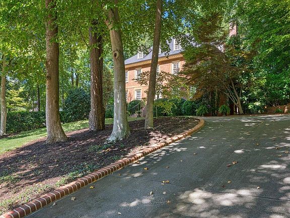 Elegant Georgian-style brick, four-level residence prominently positioned on a beautifully landscaped .56-acre lot in the highly sought-after Williamsborough neighborhood - this John C. Williams built gem features an inviting double-door entry with open stairwell and arched openings to the spacious living and dining rooms - the family room is lined with French doors and includes a oversized fireplace and wet bar and flows to the state-of-the-art kitchen with a sweeping center island, Sub Zero / Wolf appliances, and a light-filled breakfast nook and Butler's pantry - an expansive brick terrace with ascending stairs to the private backyard spans the rear and provides a spectacular flow for entertaining - the warmth and sophistication is further enhanced by the generously proportioned spaces with 9' ceilings, random width heart pine floors (up/down), front/back stairs, plantation shutters and exquisite moldings and built-ins -  the second floor features the primary retreat complete with sitting room and spa-like bath with his-n-her vanities and closets, whirlpool tub and walk-in shower - also included is a second bedroom and laundry with custom cabinets and integrated desk - the third floor has two more large bedrooms with private baths and lots of storage - the lower level offers a rec room with fireplace, wet bar and wine cellar plus a full bath - the opposing side includes an office or flex space with shelved closets - circular driveway with tinted concrete and brick curbing - gorgeous grounds with mature plantings - exceptional property!