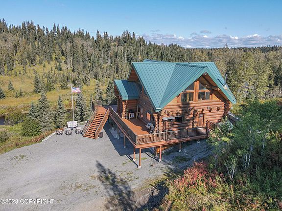 Every detail of this property reminds you that you are immersed in Alaska. From the 1,600 foot river frontage, to the rustic and refined interior of this ''Rasmussen'' Log Home is epic in every way. This 5 bed 4 bath Home will constantly remind you of the breathtaking property you call Home. Trout and salmon can be caught and enjoyed without ever leaving your expansive 9.7 acre Property.This property is a wildlife super hwy. Enjoy the view of the river and wildlife from almost every room in the house. From the copper sinks , to the premium kitchen appliances every detail of this gorgeous log home does Justice to the grandeur of the property and setting. Minutes from the Anchor point beach. Only 15 minutes to Homer. The location is convenient to town, yet lets you feel secluded and private. Radiant floor heat throughout the Home. A very expansive cleared, flat and manicured field/area down by the river is accented by a beautiful and fragrant grove of cottonwood trees has amazing potential for an Events venue. The combination of the Grand and expansive Log Home, and the unparalleled access to your private stretch of river makes the property one of a kind. This is your Alaska.