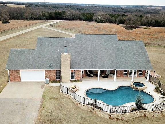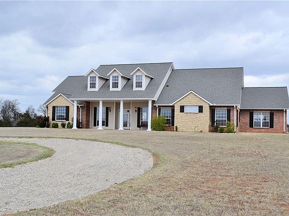 Extraordinary Country Living. Beautiful custom built home with all of the amenities, including hardwood kitchen cabinets, granite countertops, wood and tile flooring throughout, large master suite, office, formal dining and living rooms, high ceilings with crown molding and much more. In addition to this gorgeous home and just a few steps outside your backdoor is the absolute in outdoor enjoyment, with an in ground sport pool, hot tub and fire pit with the perimeter of this luxury area landscaped and fenced. Country living would not be complete without of course the acreage which includes 15 acres suitable for livestock or recreational fun, and a 40' x 70' steel framed insulated shop building complete with concrete flooring and fully wired. This complete package is just minutes from Okc. See drone photos for proximity from Chandler Lake and Golf course. Additional adjoining land available.