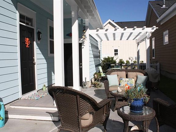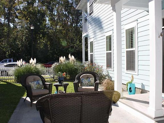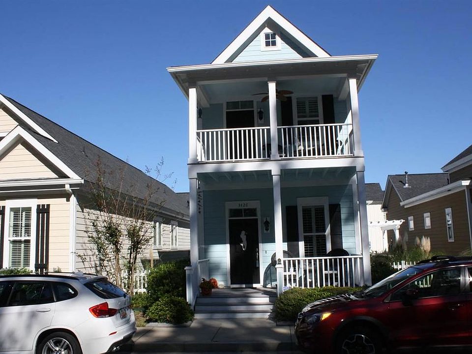 Enjoy life in this delightful 2 bedroom, 2 1/2 bath Charleston style home in the "Front Porch District" of "Sweetgrass Square". Living in "The Market Common" offers a lifestyle where you can walk to restaurants ,the bookstore, gym, movies, shopping and the park. This charmer boasts 10 foot ceilings, top and bottom front porches, overlooking a wooded area. There is an interior fire sprinkler system throughout the entire home . The kitchen has stainless steel appliances,granite counter tops and under cabinet lighting as well as lighting on top of the cabinets. The refrigerator is included. The Master suite has 2 closets, double vanity sink w/generous countertop space, shower and, best of all... you can enjoy your morning cup of coffee from the porch off the Master Bedroom looking out over the woods. The 2nd Bedroom has an Ensuite Bath. The laundry area is conveniently located upstairs between the two bedrooms. The side yard is ideal for outdoor entertaining or just lounging with your favorite book . The Owners have added a custom pergola, stamped concrete patio and a lovely water feature. All Shutter/Blinds and custom stained glass in 3 window transoms will convey. The 2 Car Garage has been insulated ( including the door) and has hanging shelving for add'l storage. The Owner also installed an automatic exhaust fan in the garage ceiling. The driveway is big enough for 2 cars to park. The Owner has added additional storage under the stairs as well as access to the attic area for storage. The Myrtle Beach State Park is only one mile away and the airport is under 10 minutes driving time....OR.... take a 5 minute drive to the beach in your golf cart!!!. Enjoy living in one of Myrtle Beach's most desirable communities!