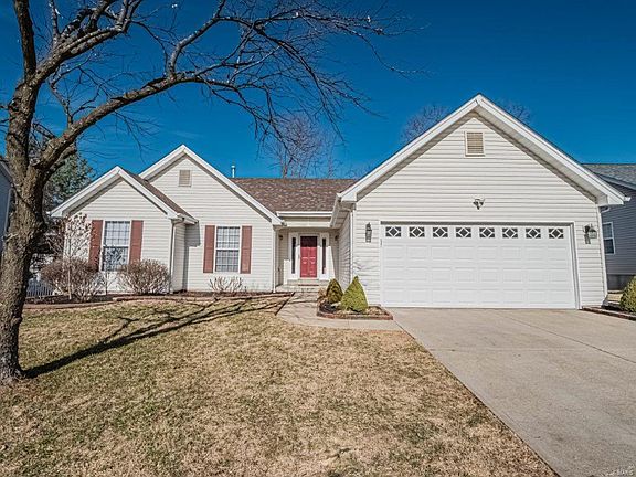 It might take a GPS to navigate to this lovely 1,520 sqft vaulted Ranch home, but it's worth it. Boasting 3 beds/2 baths in the exclusive Somerset Hills neighborhood, this home is built to entertain w/ 12' vaulted ceiling in LR & pre-wired for all your surround sound needs, EIK w/ breakfast bar, pantry, & fenced backyard w/ lakeview patio. Kitchen has new dishwasher & stove. Mature trees/landscaping accentuate the outdoor space. Finished oversized 2-car garage features insulated garage door, workshop/storage & separate heat. Main floor laundry. Basement is bright & partially finished, but still offers ~800 sqft of a blank canvas for your design vision. Fresh paint. Some electric upgrades. Security nightlights. Bedroom 3 is used as an office, but can be converted back. Home is located on quiet, low traffic street near back of the subdivision. Francis Howell School District. Refrigerator negotiable. Don't sleep on your dream home, sleep in it!
