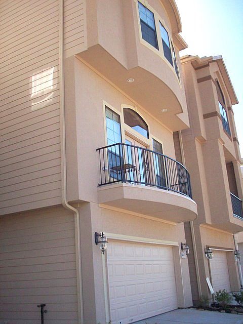 Three-story 2008-construction home in a gated community. The home has a small fenced yard, gas range, roomy kitchen, granite counters, high ceilings, washer/dryer, wood floors, guest/half-bath and a second-floor balcony. Lots of windows too! Master suite & a secondary bedroom and bathroom are on the third floor. Another bedroom/study is on the first floor. Master has two sinks, jetted tub, walk-in shower, and large closets. Fantastic location for Medical Center, Rice or downtown employees.