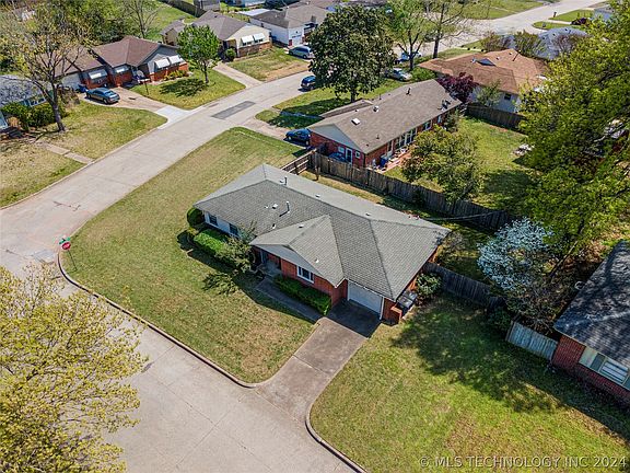 A REMODELER'S OPPORTUNITY! Nestled in the heart of Tulsa. Oklahoma. this 1954 partial brick bungalow exudes charm and Potential. Situated on a corner lot, its central location offers convenient access to interstate routes. As you venture inside, you're welcomed by an inviting entry hall. The living & dining combo space offers a decorative fireplace and a wall of windows overlooking a spacious patio area perfect for alfresco dining. The vintage kitchen offers a window above the sink and a small seating area. Original wood flooring adds character to the home. While the vintage bathroom retains its nostalgic appeal. It's ripe for modernization to meet contemporary standards. The original built-in bookshelf in the hallway adds a touch of historic charm and serves as a focal point for displaying cherished literary treasures. This home presents a remarkable opportunity for customization and personalization. With a vision and a little TLC, this bungalow has the potential to be transformed into a stylish and comfortable retreat, perfectly tailored to suit your lifestyle. The property is offered "AS-IS'.