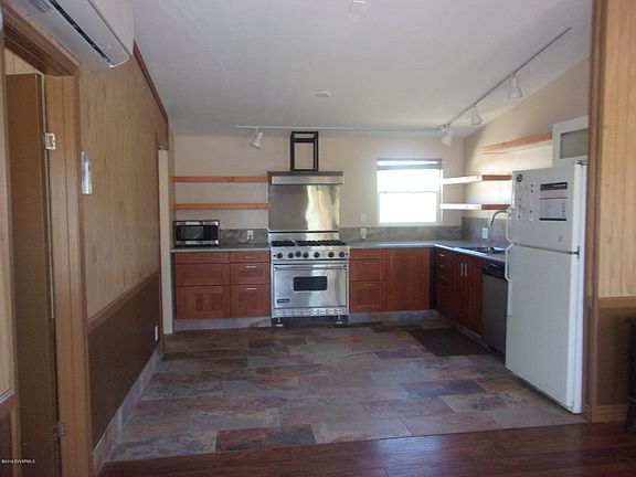 CAMP VERDE, Great starter home. Look at this recently remodeled home on oversized 0.39 acre corner lot, fully fenced and mountain views. Space for your toys/garage/RV. Covered entry and patio. Concrete slab perfect for storage building. Interior has a country feel with open living room and kitchen. Living room has engineered hardwood floors, ceiling fan and a ventless gas heater for those chilly nights. Kitchen has new cabinets, and open shelving, stainless steel sinks and a Viking range/oven. 10 panel glass pocket door leads to laundry room. Master bedroom has walk-in closet and master bath has tub/shower combo. Guest rooms are spacious with ample closet space. Guest bath has walk-in shower. Home has mini-split HVAC system that is energy star rated and new metal roof recently installed
