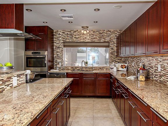 STYLISH & TOTALLY REMODELED! Feels like a new home! Spacious floor plan offers tile flooring, custom paint, smooth textured walls & ceilings, fireplace, recessed LED lights, sparkling pool & more! Wait till you see the stunning NEW CHEF'S KITCHEN! High-end cherry cabinetry w/ tons of pull out features like cutting boards & recycle bins, premium double-thick granite counters, new SS appliances, double wall ovens, 36" Wolf cooktop, quiet dishwasher & gorgeous glass backsplash! Huge, eat-in kitchen adjoins all living spaces. Spa-like baths updated too, master has all-new custom tile shower. One of the largest homes around. There's even a big indoor laundry room! Let the party flow outside to the many pergolas, paved patios with built in seating & refreshing pool. Large storage shed! NO HOA!