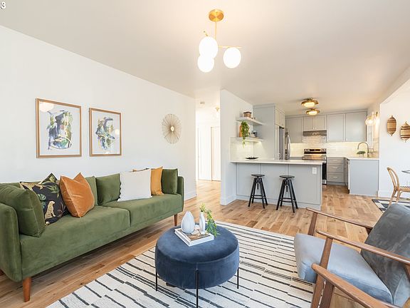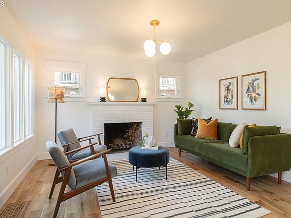 Nestled in the heart of Portland's vibrant Beaumont-Wilshire neighborhood, this vintage 1927 home has been thoughtfully transformed into a charming oasis that effortlessly marries period charm with modern comfort. With 3 bedrooms, 2 baths, and a complete interior remodel, this home offers an idyllic living experience. Entry area opens to a great room with a warm inviting fireplace, handsome solid white oak floors throughout the home and well designed kitchen for entertaining. Kitchen has beautiful timeless Calacatta Alto countertops, maple custom cabi- nets and stainless steel appliances. Tasteful Tribeca gypsum white porcelain backsplash in the kitchen creates a clean and welcoming am- biance too. Bathrooms include period charm tiles from Ann Sacks Tile that maintain a tasteful and modern aesthetic. New double-paned win- dows, plumbing, and updated mechanics reflect the attention to detail in this full interior-to-stud remodel. Discover the endless gardening possi- bilities in your backyard oasis too, complete with a thriving apple tree. Plus convenient proximity to all the vibrant amenities along Fremont Street, where you can enjoy trendy restaurants, cafes, boutiques, and more. Located within the highly regarded Alameda Elementary, Beaumont Middle, and Grant High School districts. [Home Energy Score = 5. HES Report at https://rpt.greenbuildingregistry.com/hes/OR10201619]