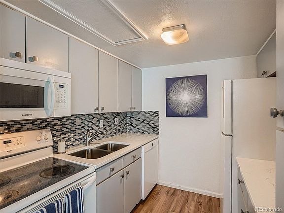Welcome home to this recently updated unit! The living room is expansive with a wood-burning fireplace and tall ceilings. The kitchen is fully equipped including built-in microwave and dishwasher. The expansive east-facing deck with 2 sliders is one of the largest in the complex. The complex has a gym, party-room, indoor pool and is pet-friendly. This unit has one covered carport plus additional uncovered parking just steps from the front door. This unit is just minutes to DTC, Downtown, fabulous shopping and restaurants, easy access to I-25, I-225, and Southmoor RTD Station. You will have plenty of built-in storage and a walk-in closet. Welcome home!