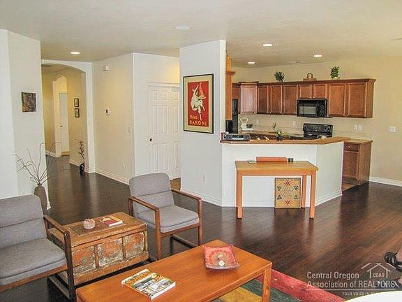 Turn-Key single level Craftsman in quiet Redmond neighborhood. This 3bd 2ba with gorgeous backyard & Cascade Mnt View is perfect for a started, investment, or retirement home. Relax on the large backyard-paver patio, entertain in the bright & open great room, and enjoy the ideal location not far from town & easy access to Sisters. Features: heat pump, newer ext/int paint, new carpet, high ceilings, electric fireplace, landscaped yard w/ sprinklers, multiple sliders to backyard, and many more touches.
