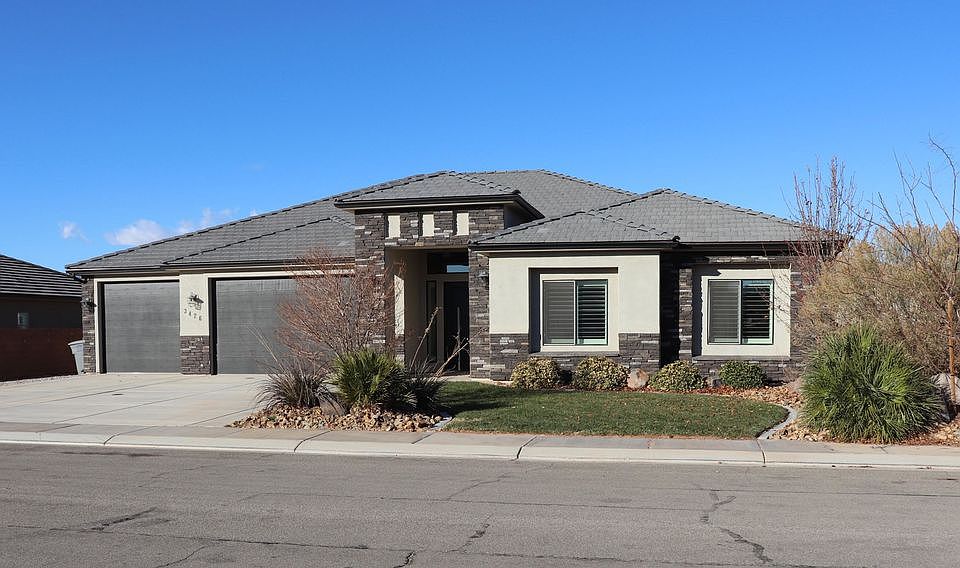 Exquisite modern home located in Dixie Springs. Open floor plan with 4 large bedrooms plus a flex/den room. Nicely upgraded with granite countertops throughout, stamped concrete, stunning fireplace, stainless steel appliances and more! Fully landscaped and fenced backyard with great views of Pine Valley Mountain. Minutes from Sandhollow Reservoir, Golf Courses, ATV trails, hiking/biking and more