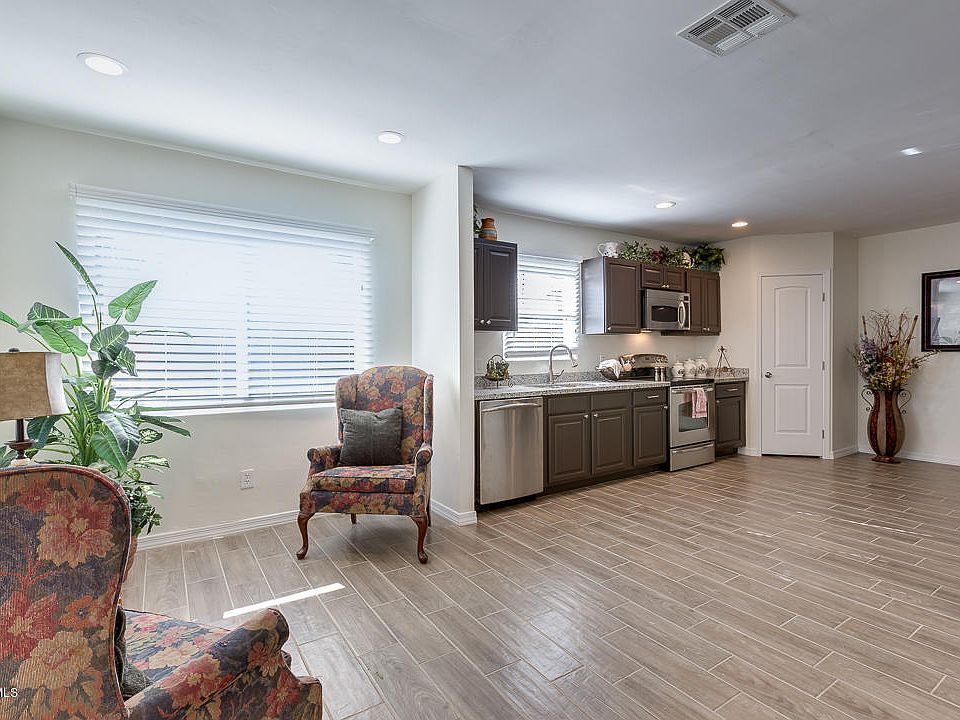 Dont miss this charming 3 bed, 2 bath property for sale located in Phoenix. This beautiful home features carport space, gravel landscaping, neutral paint, and luxurious light fixtures throughout. This lovely open kitchen has everything you need, ample cabinetry, breakfast room, a pantry, granite countertops, and matching stainless steel appliances. Inside the master bedroom you will find a full bath and spacious walk-in closet. This expansive backyard is comprised of paved sitting area, 2 car garage, and lots of potential for truly making it your own. Don't miss out on this perfect home. Schedule a showing today!