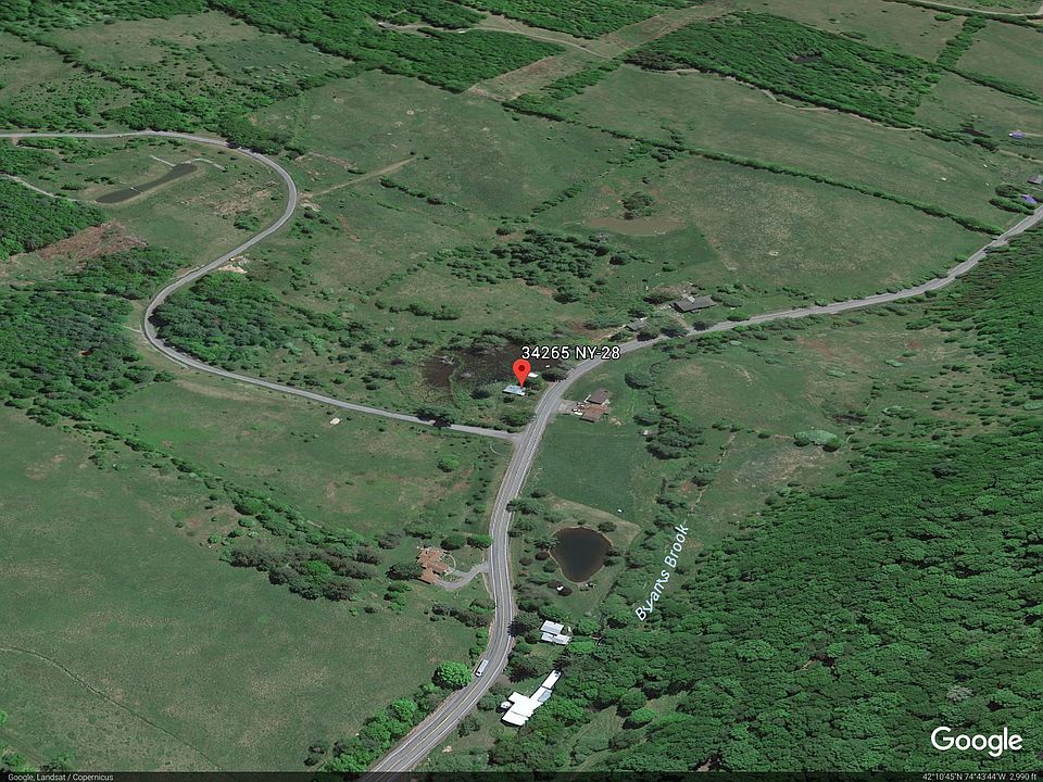 On the base of a mountain with a stream. Not in a flood zone. It is deep discounted as a fixer upper. Good investment!