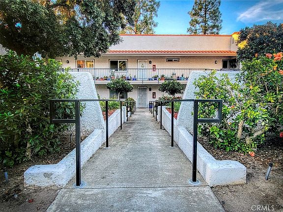 Remodeled La Quinta Model with a View and a 1 Car Garage in a great location on a single loaded street. Located in the senior community of Laguna Woods, this 2 bedroom 2 bath home has a gorgeous kitchen with great lighting, stainless steel appliances, custom walnut cabinets and granite counter tops. It also features vinyl dual pane windows, laminate floors, central heat and air, and side by side laundry. The living room has recessed lighting with smooth ceilings and a wood burning fireplace. Sliding glass doors lead out to an enclosed patio with a beautiful view of the neighborhood and the hills beyond. To the left of the patio is an open area to BBQ or lead pets out to an open grass area. The guest bath has a tiled tub and updated vanity and the master bath has an extra large walk in tiled shower with a seat and an updated vanity. Smooth ceilings with crown molding continue throughout the home. The master bedroom has tons of mirrored closet space and the guest bedroom has an added closet that runs the entire length of one wall. Enjoy parking in your rare 1 car garage and enjoy the common patio area shared by 5 other units in the heart of Laguna Woods.