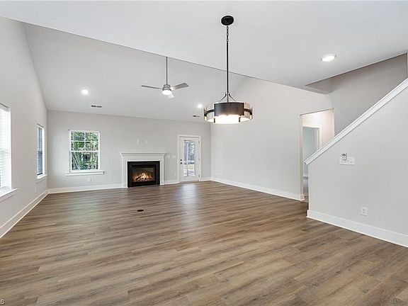 The Goldenrod plan. As you enter, the study is just off the foyer with glass doors. The gourmet kitchen has granite countertops, island with overhang, pendant lighting, stainless steel appliances that include an induction cooktop, microwave, dishwasher, oven & chimney hood. There is a party pantry just off the kitchen. The kitchen & casual dining area open into the great room with a vaulted ceiling and gas log fireplace. The great room leads out to a screened porch and patio. The primary bedroom is on the main level with an oversized walk-in closet. The primary bath includes double vanities, a private water closet and a luxury tiled shower. Upstairs are 3 spacious bedrooms with 2 full baths, a bonus room, an office space and walk-in storage. The majority of the flooring on the main level is luxury vinyl plank which is also in the baths & laundry room. EcoSelect certified.
