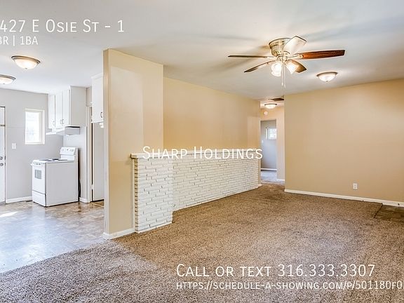 AVAILABLE NOW! Cozy 2 bedroom 1 bathroom duplex in Southeast Wichita. The duplex features vinyl and carpet flooring, and neutral finishes. Kitchen appliances including refrigerator are provided. Tenant pays all utilities. Security deposit equal to one months rent. Maximum 2 pets are allowed with pet deposit equal to 1/2 one month rent and $25/pet monthly pet fee. All adults occupying the property must complete an application. Applications are processed on a first come first serve basis, and will not be processed until they are fully completed. At least one year rental history with reference is required, 3x's gross income to monthly rent ratio, credit and background review. Co-signer may be required if one or more of the above requirements are not met.