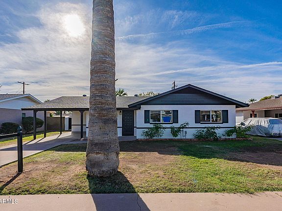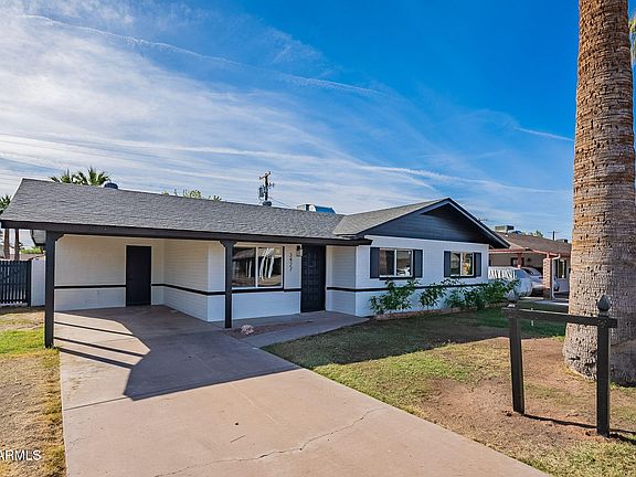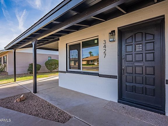Nestled in the highly desirable Arcadia Lite neighborhood, this beautifully remodeled home combines modern upgrades with timeless charm. Located on a quiet, palm tree-lined street with distant views of Camelback Mountain, this property is ready to impress! Step through the carport entrance into a spacious mudroom/ laundry room featuring built-in storage. The home offers 3 bedrooms and 2 bathrooms and has been updated with a new roof, energy-efficient windows, stylish interior and exterior paint, and new tile flooring with cozy carpet in the bedrooms. The bright and modern kitchen showcases quartz countertops, stainless steel appliances, a chic tile backsplash, and a sleek hood fan. Both bathrooms have been beautifully upgraded, featuring glass-enclosed showers—one with a tiled walk-in and the other with a tub surround. The backyard is an entertainer's dream, with a newly refinished diving pool, a spacious covered patio, and a lawn area ready to flourish as freshly planted grass seed grows in. A convenient storage shed provides additional space for your tools and toys. With its incredible location, thoughtful updates, and beautiful outdoor living space, this home is move-in ready and won't last long. Schedule your private showing today!