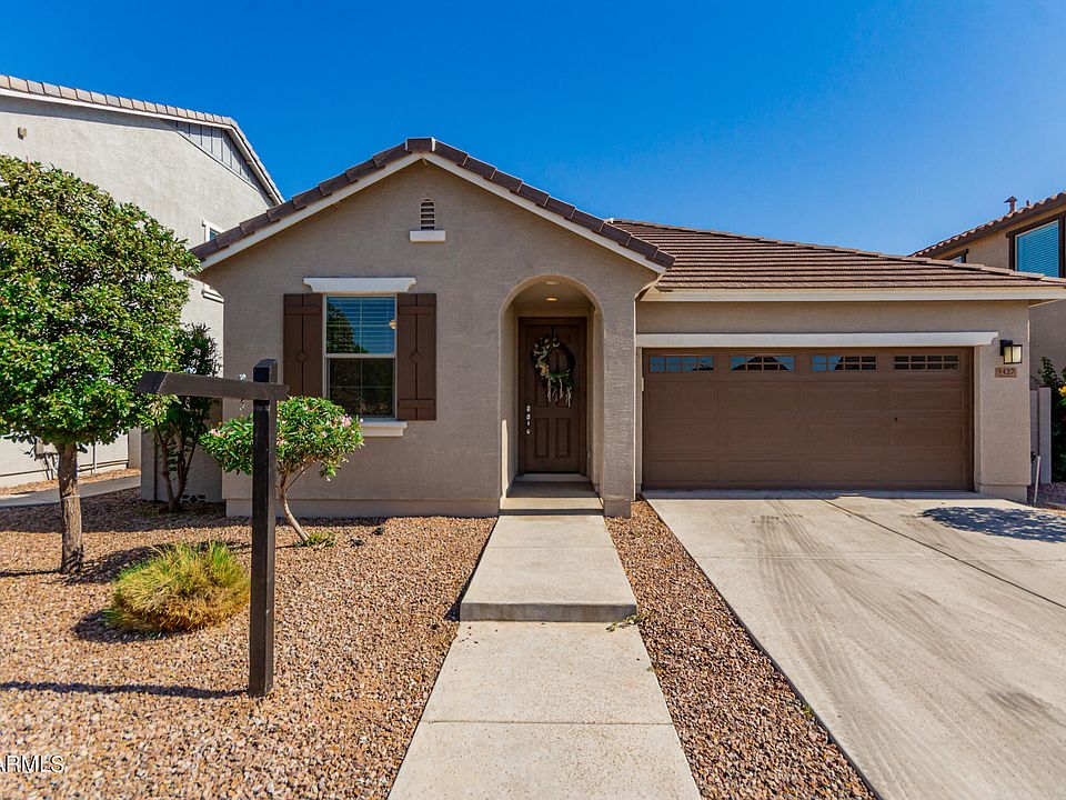 What you've been waiting for! Fantastic Mesa location right off the loop 202 North and Val Vista! Gated community and like new! High demand layout all on one level. 3 bedrooms PLUS den that can be closed off for office or another bedroom. 9 foot flat ceilings. Tile everywhere but the bedrooms! Beautiful kitchen with granite counters, stained cabinets, kitchen island and upgraded appliances. Great room concept with lots of living area! Master bedroom at rear of home for privacy. Large bedroom area, two sinks in master bathroom with large walk-in shower. Plenty of closet space. Backs to walking paths with no neighbors to the rear. Super quiet location thanks to gate and being in the back of the subdivision. All this home needs is you!