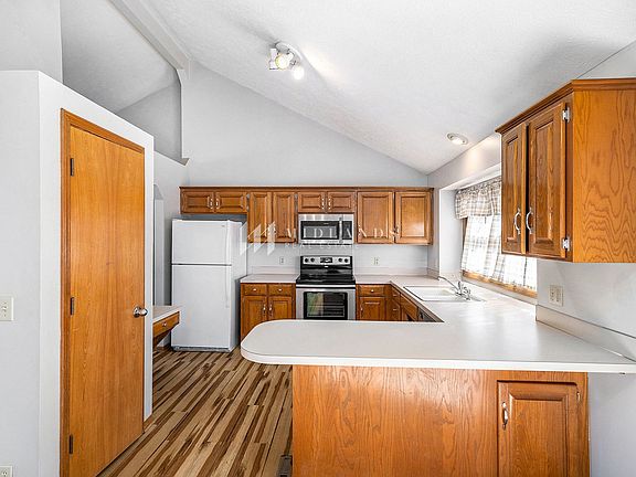 This Two Springs home has a spacious floor plan with an open concept main level featuring vaulted ceilings. In the kitchen and dining room you'll find wood floors, carpet throughout the rest of the house. Also on the main level you'll find three bedrooms, including the primary bedroom with ensuite bath. Enjoy extra living space in the finished basement, complete with wood burning fireplace and an extra half bath. The two car garage offers extra parking or storage space. Outside you'll find a large, flat fenced backyard and deck that's perfect for entertaining. This home also benefits from quick access to the highway and is within walking distance to the park. Small dogs will be considered with owner approval and a monthly pet charge.