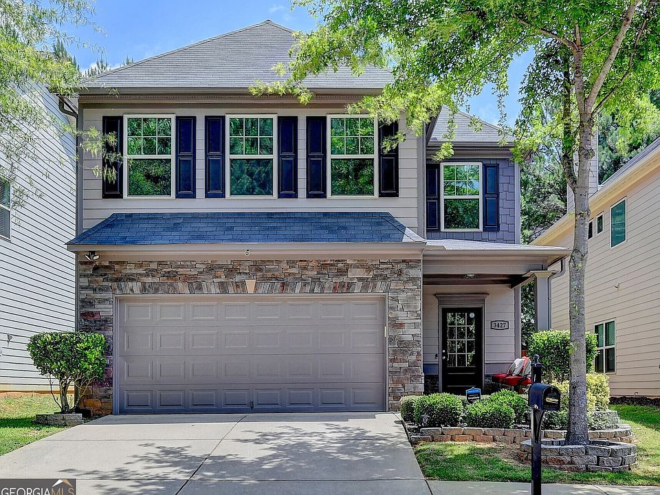 Discover timeless elegance in this 2-story Craftsman Style home nestled in the heart of the highly desirable Woodward Crossing in Buford, GA. Abundant space abounds in this 3-Bedrooms, 2.5-bath gem, creatively blending classic architectural detailing with upscale modern finishes. This home features exquisite front stone and shaker siding trim work, The entrance greets you with crown and wall molding along with hardwood floors, wrought iron stairs, extending a warm welcome as you move through this masterpiece. Fall in love with the kitchen's beautiful upgraded cabinets, featuring granite countertops, glass tile backsplash, SS appliances, breakfast area while an expanded kitchen island serves as the heartbeat of this exquisite space. This beautiful home also features a formal dining area for hosting friends and family, media loft for casual relaxation, luxurious oversized master, Large secondary bedrooms, Privacy meets pleasure in the spacious backyard, providing the ideal space for outdoor entertaining or peaceful contemplation. This property is located in a friendly sidewalk community, moments away from restaurants, shopping, and entertainment at The Bowl at Sugar Hill Amphitheater. Enjoy easy access to Lake Lanier, Downtown Buford, I-985, and I-85, making commuting a breeze.