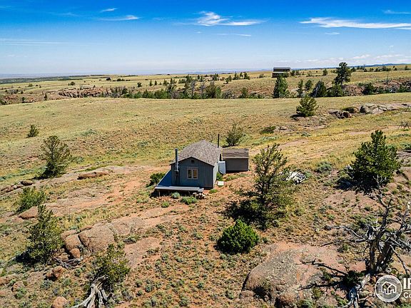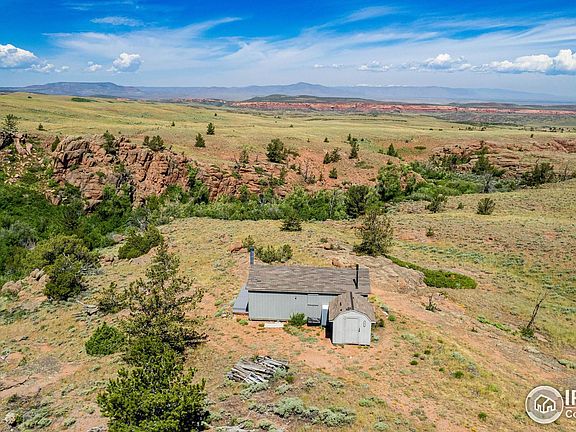 Discover the natural beauty of this off-grid property featuring stunning rock formations and a picturesque canyon. Sand Creek serenely flows through this sprawling 1,742,400-square-foot lot, offering breathtaking views that extend to Wyoming, including the iconic Chimney Rock. The creek's canyon creates a seasonal waterfall and pool, showcasing the splendor of nature at every turn. Vaulted ceilings with exposed beams craft a bright escape within the 448-square-foot home warmed by a cozy wood-burning stove. Embrace ultimate self-sufficiency with no power or water connections. Connections are available for a generator to power the home. Environmentally-friendly waste management is offered with a compost toilet while a storage shed provides ample space for keeping outdoor recreation equipment. Embrace endless possibilities on this unique property offering ultimate tranquility and connection with nature.