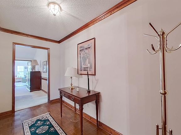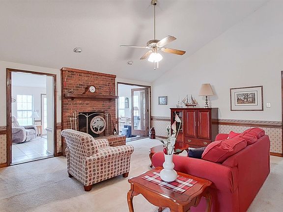 Level lot with beautiful mature hardwood trees. Well maintained ranch home ready for you to call home! Full two car garage has over 580 sf of space and makes a great workshop! Full Brick ranch home with rocking chair front entry porch will be ideal for evening guests, open living room with fireplace has cathedral ceiling - a cozy spot for winter evenings and gatherings, formal dining room off the foyer, kitchen even has a breakfast area for morning coffee, sunroom addition at the back offers views to the rear yard, french doors to the patio and has lots of windows for great lighting. Primary suite is at rear of the home and two guest bedrooms to the front. Seller has taken excellent care of this home and it shows!