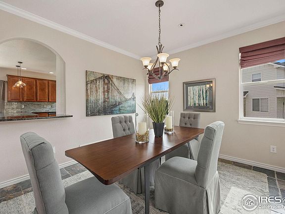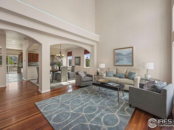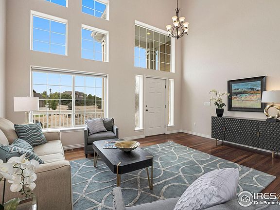 Outstanding value in popular Rinn Valley where homes generally sell for over $1 million, which is where this home was recently appraised. With an Outer Banks feel, this 5 bedroom/4 bath home on a 1/2 Acre with mountain views and an open floorplan is a stunner. The soaring ceilings in the family room and statement fireplace are only 2 of the exceptional features of the home. Second fireplace is in Primary Suite, which offers a private deck as well. All rooms are spacious and bright. Garden level basement offers 2 bedrooms and large rec room. Loft with built in desk is perfect for home or office work. Newer smart appliances, 42" cherry cabinets and pantry in eat-in kitchen. A second deck extends from the breakfast area. Oversized garage with tall ceilings offers many possibilities for storage or extension. Hot tub on flagstone patio. Fully fenced, landscaped backyard. Dual zone heat and a/c. Quick close. EZ commute to Denver, Ft. Collins or Boulder.