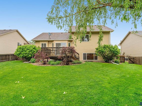 CHECK OUT THIS MOVE IN READY.......3 bedroom, 3 bathroom multi level home located in desirable SE part of Sioux Falls. This home features a soaring double vaulted ceiling in the living room, attractive hand scrapped looking wood flooring throughout the front foyer, living, dining & kitchen areas makes for easy maintenance in the traffic areas of the home. Spacious kitchen / dining with provides great storage, stainless appliances, lots of counter space / breakfast bar & deck access makes it easy for outside grilling. The upper level of this home features a primary suite with private 3/4 bathroom, large walk in closet and accented custom tray ceiling. The upper level also features a 2nd large bedroom with 2 double closets and a main full bath. Comfortable lower level family room with garden level windows & gas fireplace. The lowest level features a huge bedroom with large 5 x 10 walk in closet. Nicely landscaped, lawn sprinkler, & fenced yard.