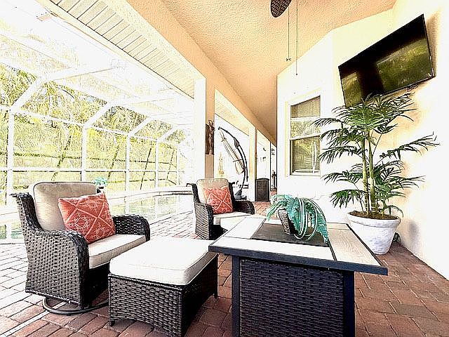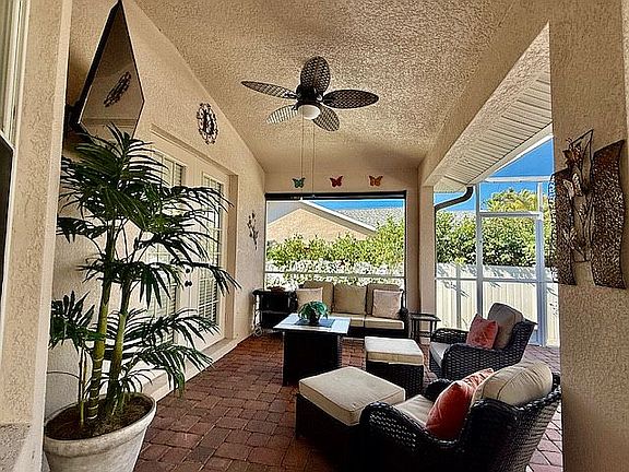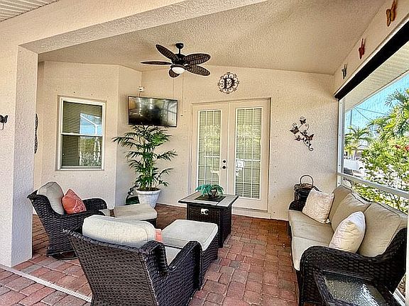 SW Florida home in great Neighborhood with easy access to shopping, walking short distance to Joe Stonis Park with pickle ball and tennis courts with a great playground. Beautiful pool home, 3 bedrooms and 2 bathrooms with dining room, living room. Seperate coffee breakfast bar and countertop wood cabinetry granite counter tops. Newly installed luxury vinyl waterproof flooring in all bedrooms. New roof in 2022, New cabinets installed in laundry room. Huge master bedroom with ensuite bathroom shower and double sink with French doors leading to pool. 2 Guest bedrooms with a full bathroom with tub leading out to pool area. Big Lanai great for entertaining with outdoor kitchen and Barbeque space. Brand New fence 2022 all around. Beautiful areca palm trees all around back of pool cage. Custom shades for privacy installed in lanai, Custom shades in living triple sliding doors. Minutes from Matlacha and Sirenia Vista Park. Multiple boat launches, great for fishing and kayaking. ALL ASSESSMENTS ARE PAID.