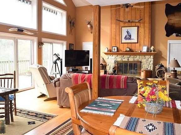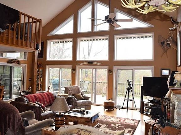 Brand new roof. Newer geothermal heat. Windows that reflect the glory of this little valley. A picture perfect location down to your own brook and private pond. Wild life abounds. A solitary location with complete privacy. There's four stall barn with running water and about twelve acres with horse friendly fence. The hay field recently yielded sixty bales. Switch from horses to horse power and tackle the hills via ATV trails. When you relax the huge deck view will take your breath away.