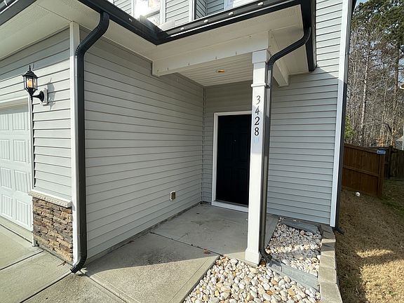 Beautiful 3 bedrooms home features a versatile first-floor study or flex room, plus a spacious second-floor loft. LVP floors throughout the home in the main areas. Screened in porch with extended concrete patio and fenced backyard. The open-concept kitchen and living areas with gas log fireplace are perfect for entertaining. The kitchen boasts granite countertops, a large island, tile backsplash, and stainless steel appliances, including a gas range, refrigerator, dishwasher, and microwave. The second floor offers three bedrooms and laundry room with washer and dryer in there. Community offers two refreshing pools, a clubhouse with a game room and gym, a playground, tennis and sports courts, soccer field with a track and scenic trails. Easy access to shopping, dining, and major highways (401 and 540) makes commuting a breeze. Renter responsible for utilities.