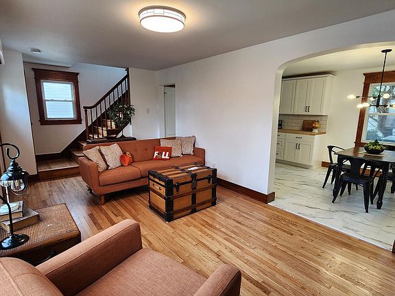 This charming traditional home, built in 1939 and set to undergo major renovations in 2025, offers a perfect blend of classic character and modern comfort. Step inside to discover a warm and inviting interior featuring beautiful hardwood floors and luxury vinyl plank throughout. The combination kitchen/dining area flows seamlessly, enhancing the home's welcoming atmosphere. With three cozy bedrooms and one and a half bathrooms, this residence is designed for both relaxation and functionality. The fully finished basement provides additional living space, perfect for a home office or entertainment area, and includes convenient laundry facilities. Gather around the brick fireplace with mantel in the living room, creating a perfect spot for cozy evenings. Outside, the property features a lovely front and rear yard, ideal for outdoor activities or gardening. Enjoy the convenience of a detached garage and ample parking options, including driveway and street parking. Located in a suburban neighborhood, this home is just minutes from public transportation and less than 10 miles from the airport, ensuring easy access to all your travel needs. Experience the comfort and charm of this delightful home, where every detail has been thoughtfully designed for your enjoyment.