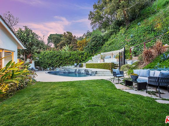 Charming traditional home with beautiful updates throughout. Warmth and style greet guests upon entering the open living and dining area with large windows, hardwood floors, and a brick fireplace. The spacious family room off the kitchen provides a breakfast nook and a wonderful place to relax and enjoy the canyon vistas. All exterior doors and windows open to the large entertainer's yard with several seating areas, grassy yard, pool, and spa. The kitchen and bathrooms have recently been remodeled with exquisite taste, blending effortlessly with the style of the home. In addition to the two-car garage, there is an abundance of off-street parking available. This is California living at its finest.