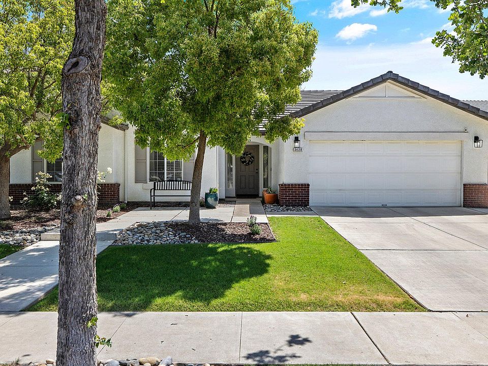 Welcome to this beautiful Shannon Ranch home in NW Visalia! This spacious home features 4 bedrooms and 2 bathrooms. The large entryway leads to a good sized living room with a cozy fireplace. The open floor plan between the living room, dining room and kitchen makes it the ideal space to entertain. The white kitchen has a bright and airy feel and has a pantry for extra storage. The tile floors in the entry, living room and kitchen give the space a nice cohesive feel. There is a built-in desk in the office area for your convenience. The backyard features added concrete, a pergola for shade and garden boxes, perfect for outdoor enjoyment. Located within walking distance to neighborhood parks and Shannon Ranch Elementary, this home is ideal for families. Don't miss the chance to make this lovely home yours!