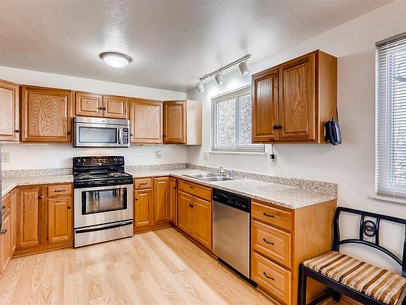 This well maintained tri-level home is move in ready and located in the quiet sought after Meadowood neighborhood with a large spacious yard and mature trees. The upper level boasts a large updated eat in kitchen, living room and 2 large bedrooms. The main level has a large family room with a wood burning fireplace and a sliding glass door that leads to a new concrete patio with electronic retractable awning and a large backyard. The lower level has 2 more large bedrooms, a bathroom with a walk in Jacuzzi jetted bathtub and a bonus family/rec room. All stainless steel appliances and washer/dryer are included. The furnace is newer and has a whole house humidifier. Low maintenance siding, new vinyl windows, and gutter guards. Also included are the solar panels and security system. Large 2 car garage with lots of storage. Conveniently located close to shops, restaurants, Cherry Creek Reservoir, trails, light rail and I-225.