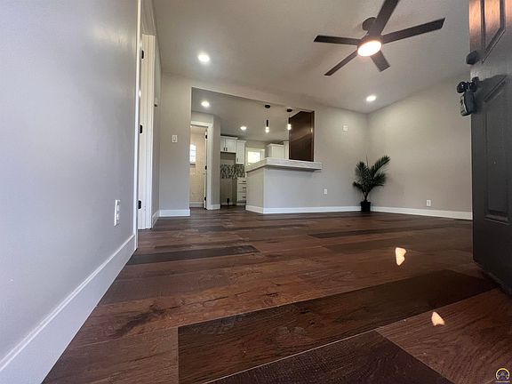 Awesome country living in the city. 4BR Ranch home on over an acre! Entertain in the light & bright LR! Wine & dine in the Kitchen with Breakfast Bar. BBQ on the covered porch while entertaining family & friends. Watch the kids or pets play in the large, fenced yard. Take comfort knowing the home was stylishly remodeled with all the modern conveniences featuring: thermal pane windows, Kitchen cabinets, countertops, backsplash, stainless steel deep sink & faucet, eat in bar/island, canned lights, hanging lights, ceiling fan light fixtures, doors, trim, baseboards, skim coat drywalls, cool interior paint, low maintenance water & scratch resistant luxury vinyl flooring, ceramic shower, floating vanity, toilet, blue tooth wireless sound bathroom vent/light fixture, finished basement, updated electric, high efficiency furnace, 13 SEER AC, sewer line, cleanout, 180' covered front porch, stained wood, ramp, finished 24’x24’ garage with pedestrian door, garage door, openers, architectural roof, gutters, vinyl & metal siding, sidewalk, patio, shed, dog run, mailbox, & attractive landscaping. Extra parking in the gravel driveway. This nicely remodeled Ranch home is move-in ready. Seller performing final touch ups. Come out & enjoy the good life & tour this SE Topeka home that shows great! This is not a Drive by. You must see the inside. Call today to schedule a private showing on your behalf. It will not last long.